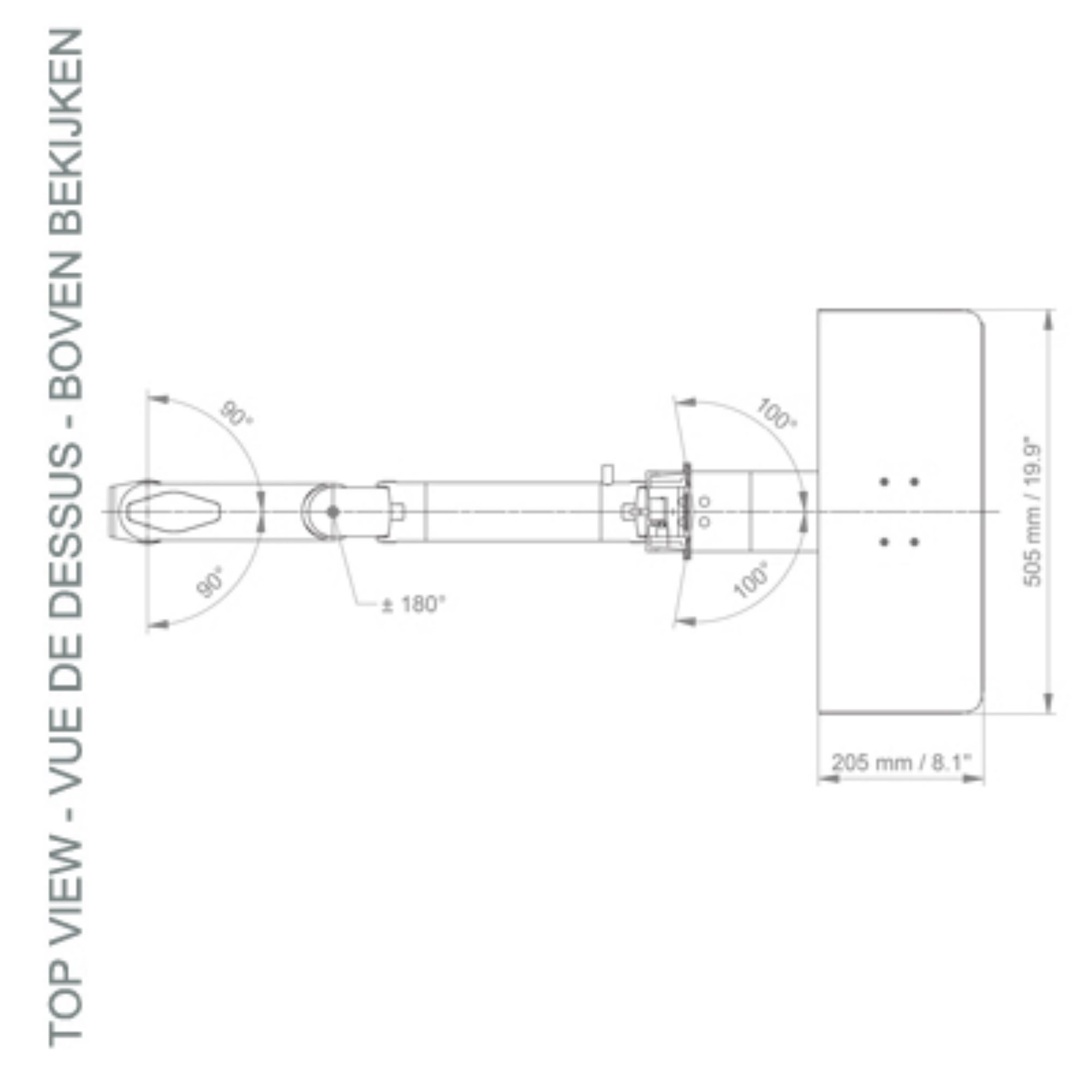* Rotation of the arm: 90° to the right, 90° to the left from the fixing point