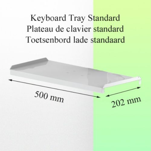 As an option, it can be equipped with a stand with a sliding right/left mouse tray with dimensions of 480 x 220 mm for the keyboard and 226 x 220 mm for the mouse, or with a large keyboard stand with dimensions of 580 x 200 mm.