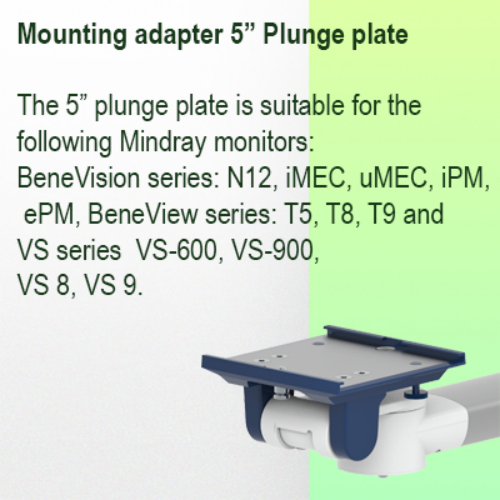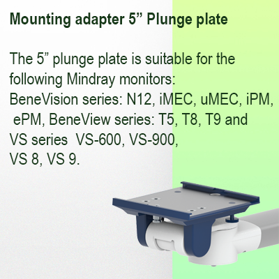 * The head of this arm has a 5" Plunge Plate or Quick Release and is compatible with Mindray monitors.