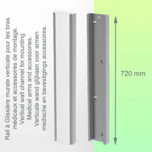 * Optional Vertical Wall Slide Rail mounting, of which several lengths are available (480 mm - 720 mm - 960 mm - 1200 mm). * These wall rails can be easily cut to size.