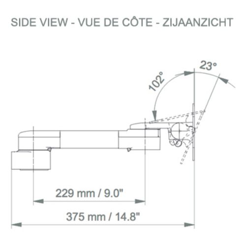 * Rotation du bras: 105° à droite, 105° à gauche.