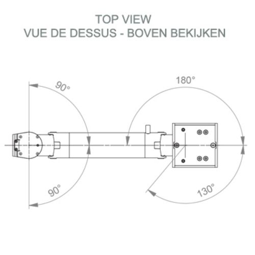 * Ce Bras Horizontal de 450 mm à vérin à gaz vient simplement s’ajuster à la hauteur voulue et fixé.