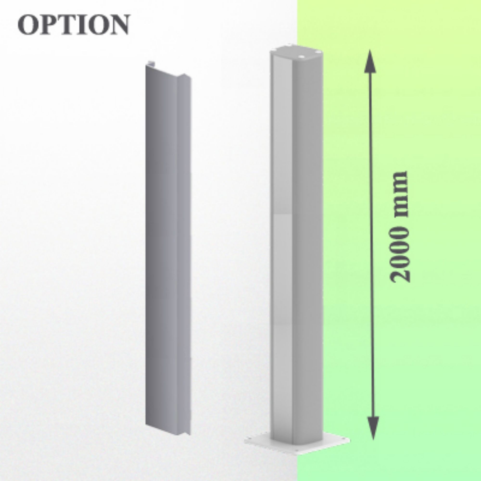 * Fixation sur colonne de sol ou plafond en option, dont plusieurs hauteurs sont disponibles (1500 - 2000 mm).
