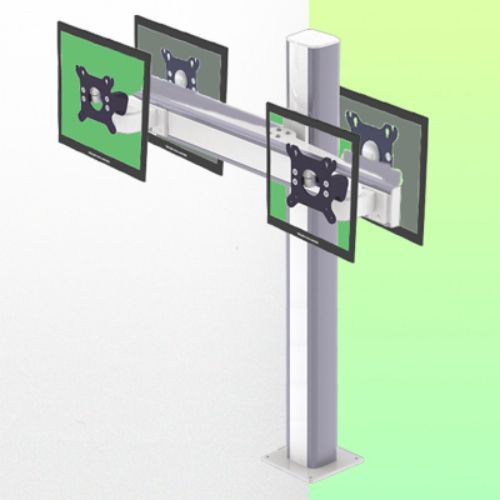 Ce Bras Colonne médicale de 300 mm permet de fixer, d'orienter et ajuster parfaitement quatre écrans LCD, ceux-ci sont placés dos à dos.