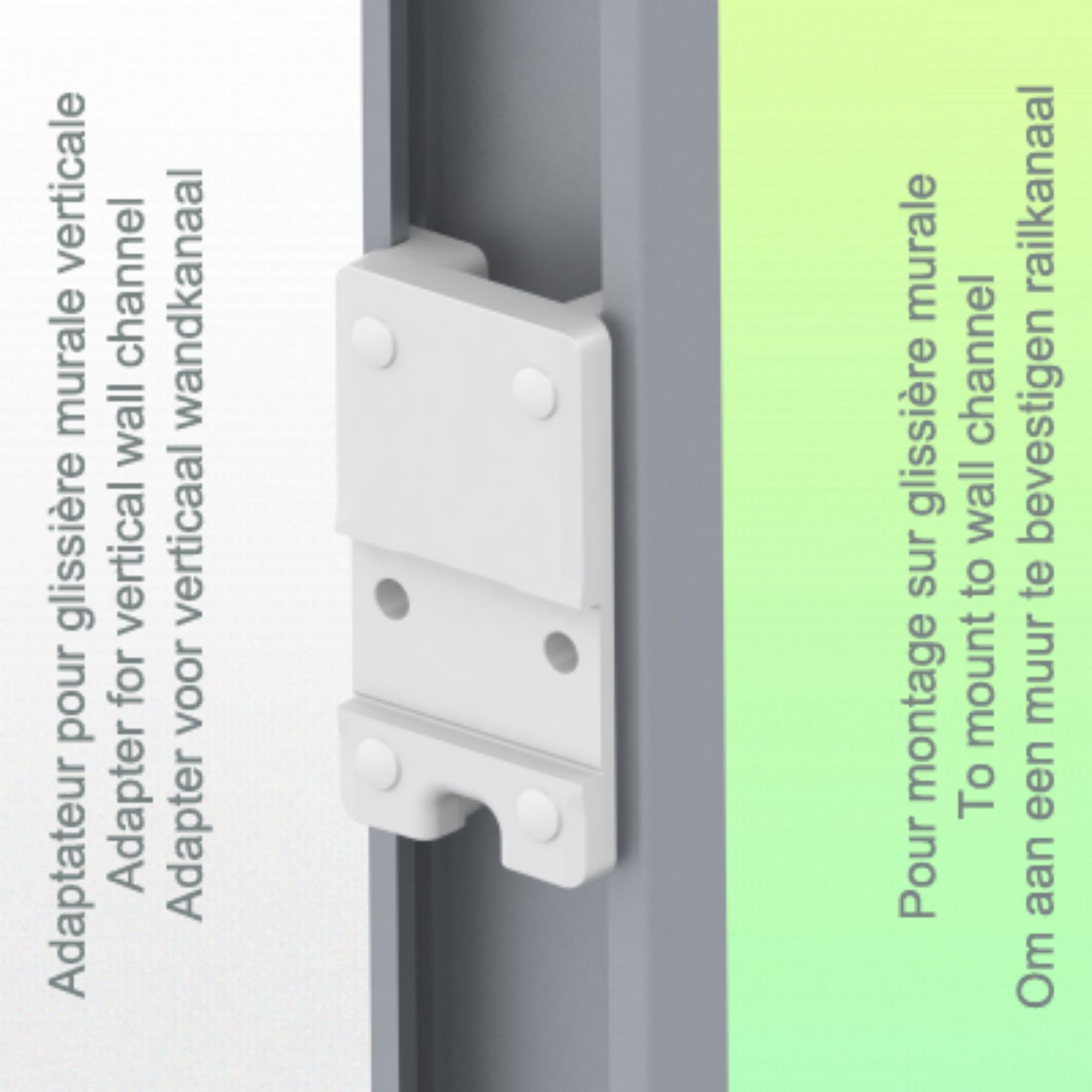 * Optionele verticale wandglijrailmontage, waarvan verschillende lengtes beschikbaar zijn (480 mm - 720 mm - 960 mm - 1200 mm).